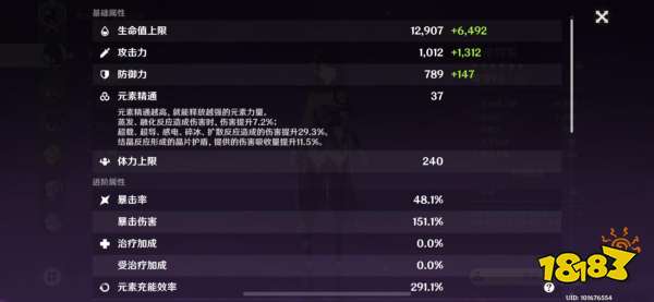 想要保证技能的无缝衔接,各角色的面板非常重要,尤其是元素充能效率