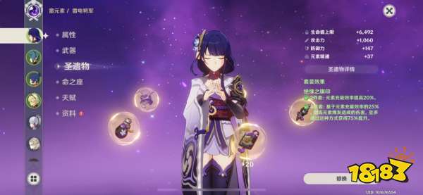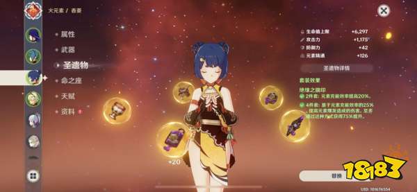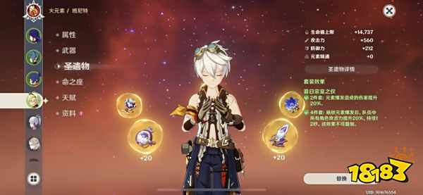 圣遗物词条:元素充能效率>暴击率、暴击伤害、元素精通>百分比攻击力