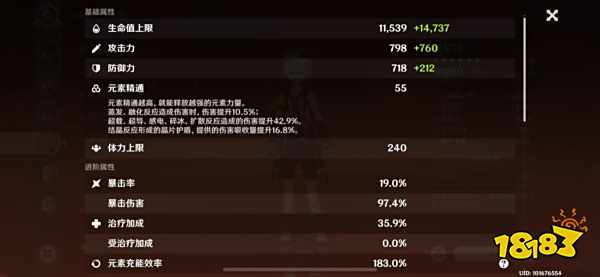 元素充能效率180%以上,暴击率保持50%左右再堆其他属性