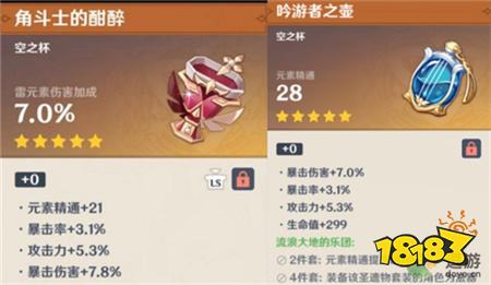 1.带雷伤杯的增伤收益,高于带精通杯的收益。20级精通杯加的187精通,只能给E技能提升28.05%的伤害。雷伤杯提供的46.6%雷元素伤害,就算被武器特效稀释过后,也能稳定增伤30%左右,而且E和Q都能吃到增伤效果加成。