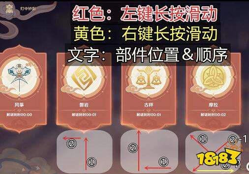 3、原神藏影灯第二天解谜答案第三个是摩拉,这个是今天最复杂的了,玩家需要左键长按向左上方滑动,接着作家长按向左下方滑动,最后邮件长按向右滑动。