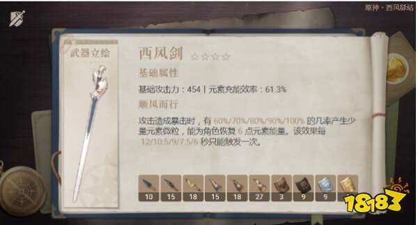 1、原神西风剑是一把基础攻击力和元素充能为主词条的武器,对于很多单手剑角色来说都有着非常不错的效果,在这个游戏中充能就代表着元素爆发, 从而给更多角色提供功能的作用,充能武器的存在让很多单手剑角色可以更加丝滑的放大招触发元素反应或者增伤治疗,武器本身的强度也就导致了可以使用的空间很大;