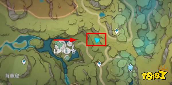 原神勇气戴于心上洞窟位置:首先我们需要来到下图位置,在卡萨扎莱宫右侧的区域,我们来到下图位置以后,朝着箭头方向移动,在岔路口朝左侧,击败岔路口的史莱姆以后,往左可以看到几个丘丘人,击败门口有两个丘丘人守护,一直往里走就是勇气戴于心上洞窟了。