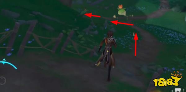 2、我们来到下图位置以后,朝着箭头方向移动,在岔路口朝左侧。