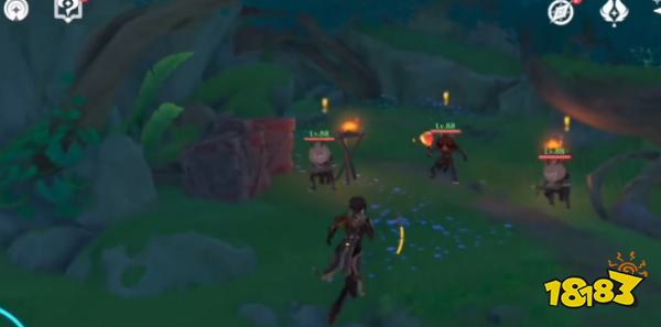 3、击败岔路口的史莱姆以后,往左可以看到几个丘丘人。