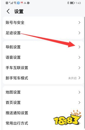 3、在设置页面找到【导航语音设置】页面,点击进入。