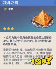 原神决斗之魂食谱通过烹饪获得;人物要求为赛诺;食谱要求为米圆塔。
