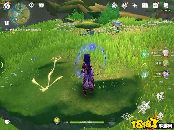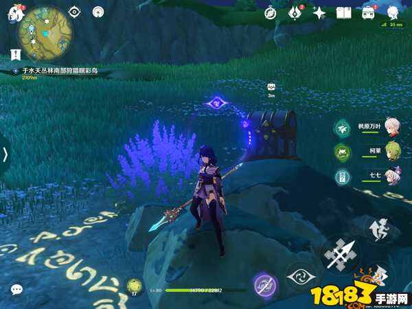 原神护世森华丽宝箱,下有三个奇怪符号,对应三处箭头,都激活可开启,记得带草雷角色,需要击败火史莱姆后出现蕈兽,击败后激活蓝蘑菇。