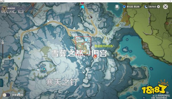 之后,就可以传送至神像,根据支线任务提示,在同一层位置的前方还有一个山洞,从这个山洞向里走便可来到我们最终的目的地,雪山顶部。之后只需完成任务要求,便可解锁此次更新的新副本所在地,以及最后的第八块石碑。