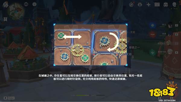 原神3.7决斗召唤之巅活动中,恒动械画七圣之篇旅行者需要尝试复原八幅恒动械画,将八幅恒动械画全部拼接完成。需要合理调整底板位置或角度,将合适的齿轮装配在齿轮柱上,使其互相耦合,驱动目标齿轮。