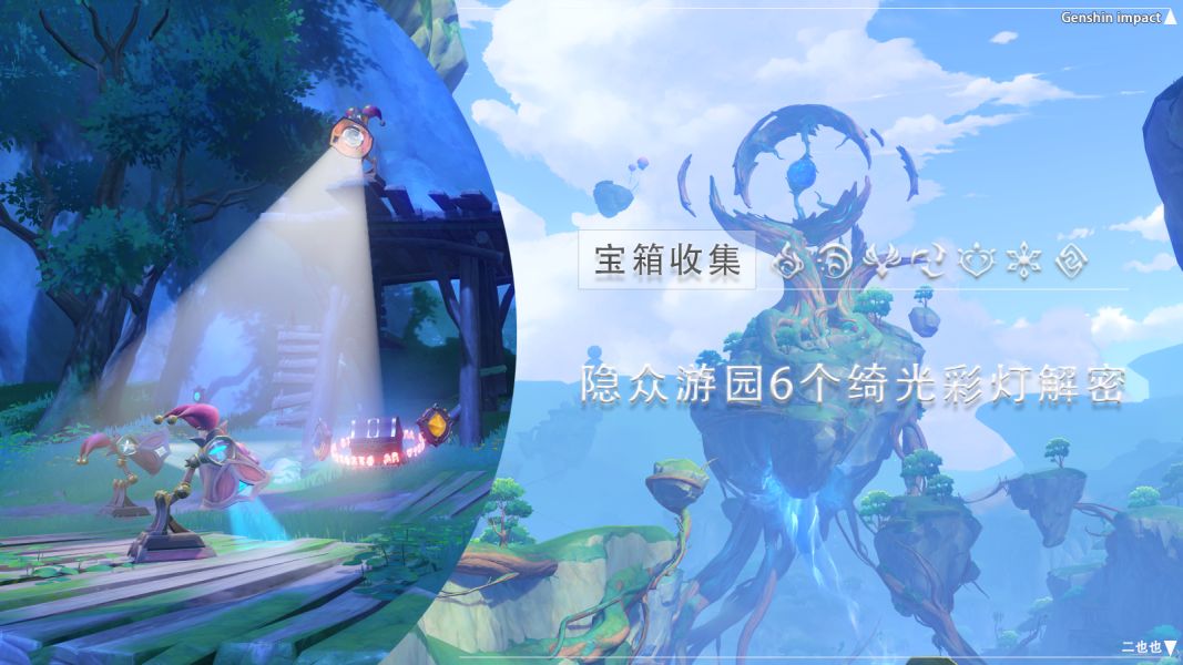 原神隐众游园6个绮光彩灯的解密,需要先完成任务其二聚众乐园,点亮夏日灯火。绮光彩灯地图指引,按图中数字顺序和指引路线解密即可获得2个珍贵的宝箱,2个精致的宝箱,2个普通的宝箱。