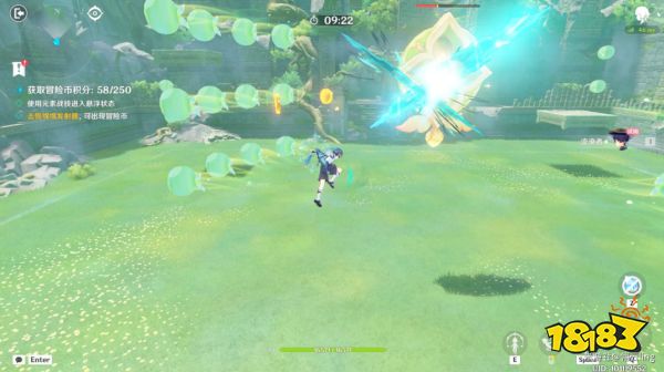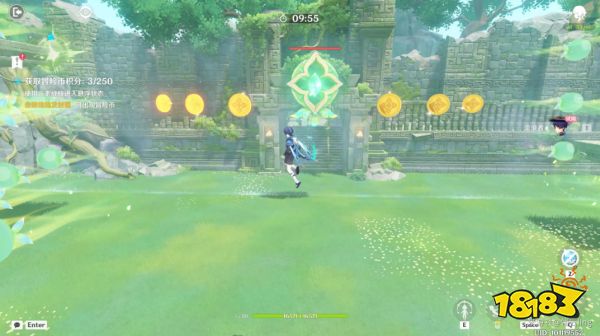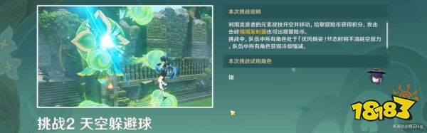 挑战规则:利用散兵元素战技飞行拾取冒险币获得积分,大冒险币5分,小冒险币1分,攻击绵绵发射器也可出现冒险币