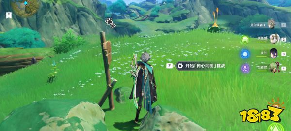 来到第一处挑战点,与标记牌交互开启;然后按小道具开启视野出现提示;