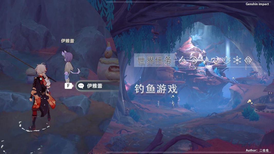 原神钓鱼游戏任务中首先往地图的东方向看,帮伊雅蕾撒饵,靠近水边交互撒饵。之后对话提示“球球章鱼”,直接击败即可。与伊雅蕾对话得知,会得到1个奇特的零件,与伊雅蕾对话结束,即可完成任务钓鱼游戏。