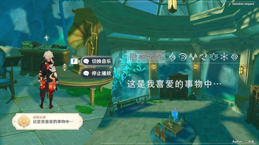 ②获得水神瞳②,珍贵的宝箱②,往地图的西北方向看,前往留声机位置,若已获得成就,交互开始播放没有反应