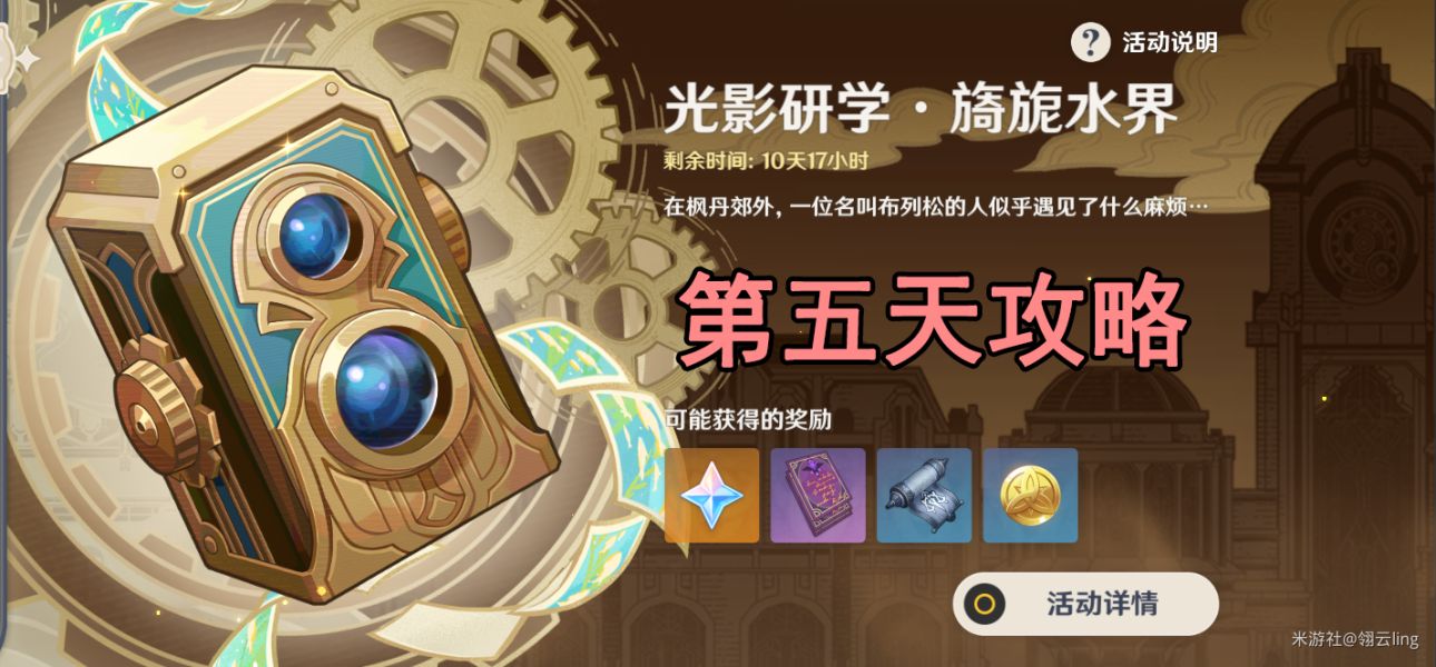 原神光影研学旖旎水界第五天,只需要记录沉船与海底生物残骸,沉船位于埃尔顿海沟锚点边,海底生物残骸位于希望之路锚点旁边,传送过去就能直接拍摄了,传送至埃尔顿海沟传送点,面向北方向,按Z拍摄沉船,传送至希望之路传送点,面向西方向,按Z拍摄海底生物残骸,即可完成。