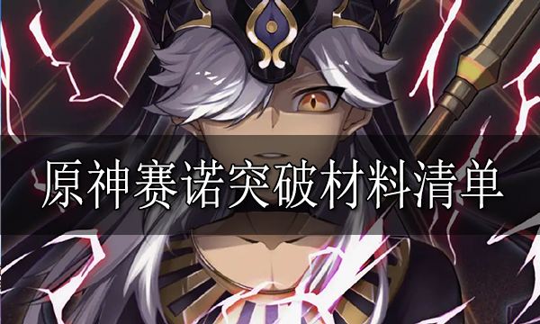 原神赛诺突破材料一共需要1个最胜紫晶碎屑、9个最胜紫晶断片、9个最胜紫晶块、6个最胜紫晶、18个导能绘卷、30个封魔绘卷、36个禁咒绘卷、46个藏雷野实、419个大英雄经验、168个圣金虫和210w摩拉。