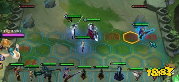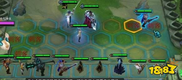 那么有些同学会问,我刺客、机器人怎么办。放心,小H会一一讲解。刺客的特性是跳向最远的敌人,按照先消灭一只石甲虫的原则,我们需要把刺客放在左下角(注意不要放在第一排),其他人放在右上角。站位如下图。