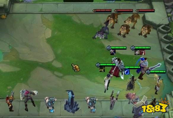 在2-6的时候刚好4级包括6经验值,所以为了确保打得过,大部分玩家会在这里升到5级(阵容强度很高或者是前面升过级的玩家例外),那小H就以5人为例讲解打野站位。如上图所示,是标准的三近战加两远程站位。一般来说,我们需要先集火解决掉一只石甲虫,所以不管你是几个近战远程卡牌,全部摆在右上角是最佳位置。