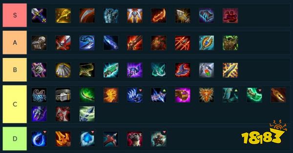 从9.20版本的装备分级来看,金铲子依然是不可或缺的存在,自然之力也能始终保持在S级。另外像龙牙、无尽、复活甲和羊刀等装备也有着不错的表现。A级装备中比较亮眼的是巨人杀手、沉默刀与火炮,基本都是很常见的核心装备。而B级装备类似科技枪、电刀以及卢登都是些出场较少的核心装备。等到C级就可以看到这些装备基本都是些功能性装备,不过也有离子火花这种有着特殊效果的存在。再往后以女神泪为首的装备就比较少见了,另外一些转职装备我们就没有列到等级当中了。