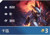 千珏的法力上限低,技能释放频率极高,输出能力也会随之提升。此外,千珏同时具备炼狱、影、游侠羁绊,这些羁绊都是目前热门强势的史诗级羁绊,集于一身时可以发挥最大的输出能力。