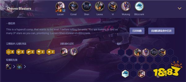 英雄组成:卢锡安+EZ+慎+蕾欧娜+蔚+机器人+孙悟空