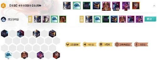 1.前期2斗士配合2未来战士加上3剑士羁绊仅5级便能成型,成型之后有一定的阵容强度,高额的攻速配合剑士额外输出几率可以打出强力的持续输出。可以很好的度过前期甚至可以较为稳定的保证前五。