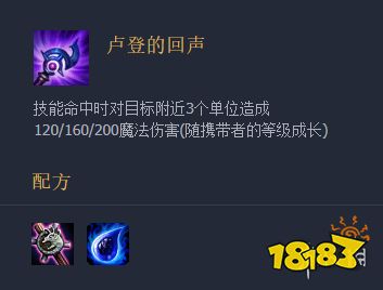 卢登的回声是二星英雄技能会造成附近3个目标的160点溅射伤害,虽然溅射伤害看似不高,但是前期英雄的血量普遍不高,很适合诺手、卢锡安这些技能释放频率高的英雄。电刀和卢登的溅射非常相似,电刀是靠普攻触发出的,可以给霞、女警等远程英雄出电刀。
