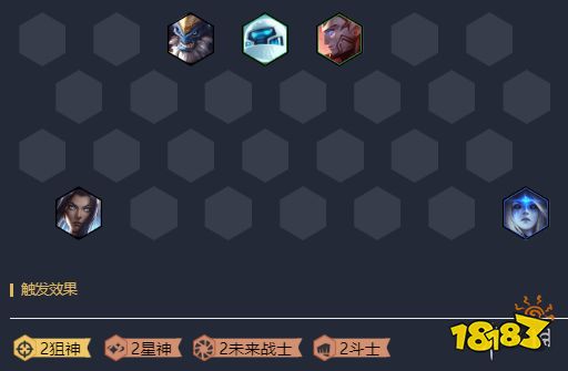 羁绊组成:2狙神、2未来战士、2斗士、2星神