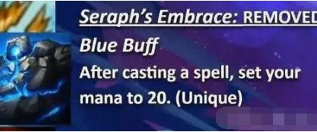 分析:永动机以后不复存在了!炽天使改为蓝buff后变为唯一装备,效果改为了在释放一次技能后,装备者的法力值会被设定为20(唯一装备)。