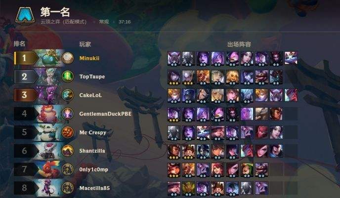 第一轮阵容是锤石 风女 剑姬 亚索 蜘蛛,就这样居然只输了一把,之前玩的时候都是连败开局的