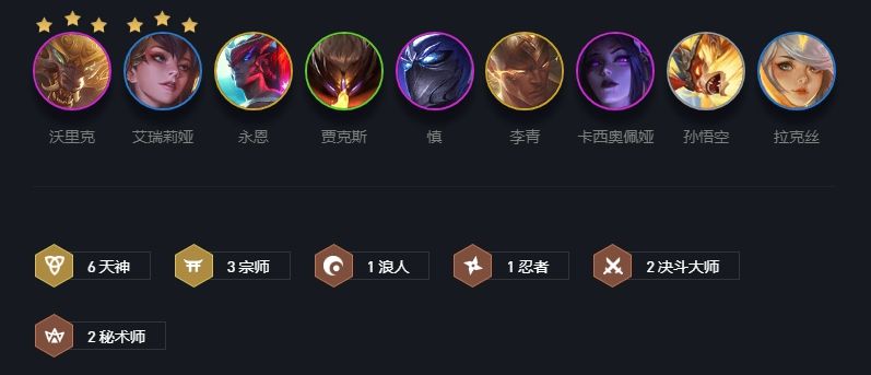 云顶之弈10.20天神宗师阵容怎么玩?天神宗师具体运营思路是什么?今天来给大家分享一下除了这两个阵容以外的另外一个稳定上分的阵容推荐:6天神3宗师2决斗。