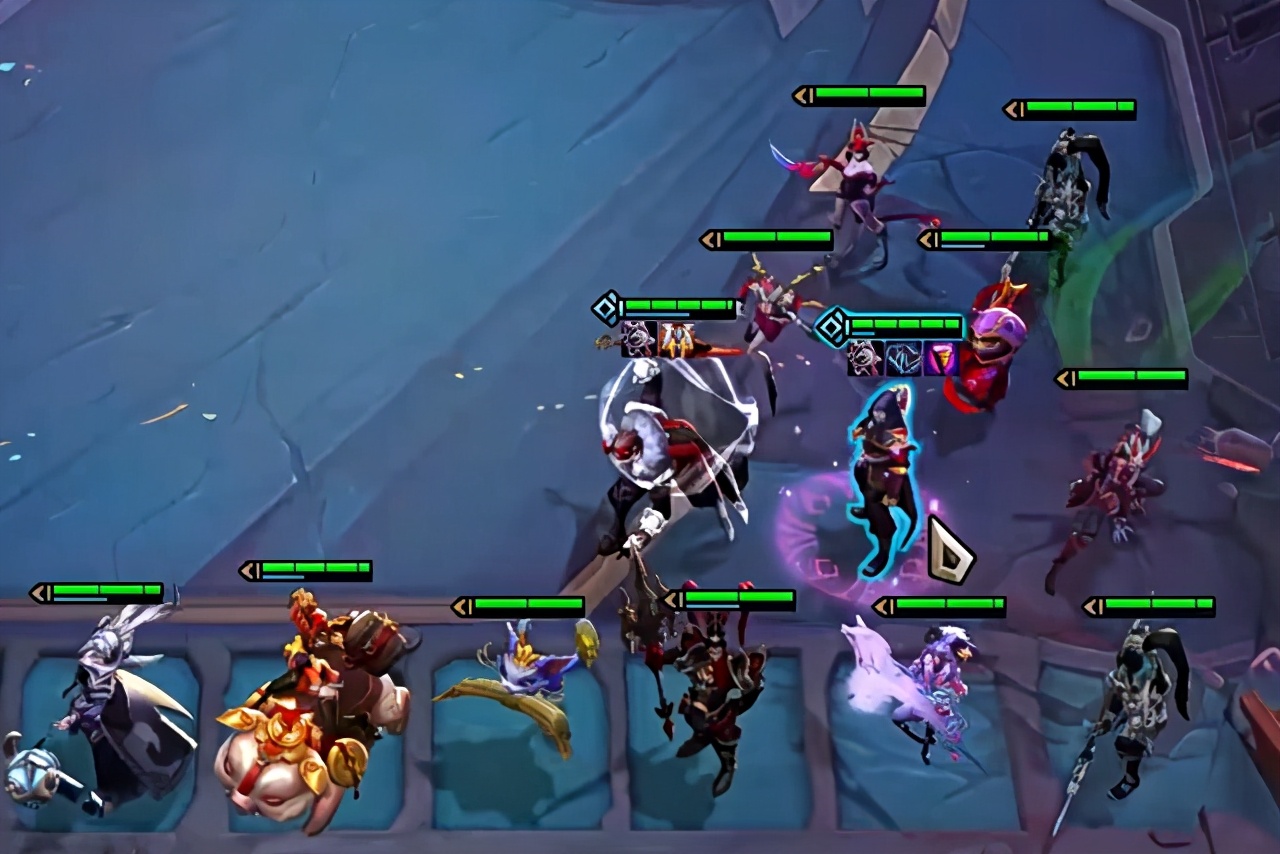 而且最骚的是,高分段(指王者千分玩家)的人开局能合装备都是直接合出来的,除了日炎以外,传送门和圣杯都是很常见的装备。但是要说起高分段最热门的阵容,当属神盾加猩红这两个羁绊了。这两个羁绊的组合,在前中期是非常强势的,用“无敌”来形容都不为过。