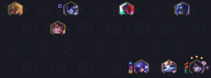 这个阵容早期可以大胆的拿月神猎来过渡。早期主要是盯着厄斐琉斯、塞拉斯两张牌来拿,这个阵容塞拉斯打前排主要是挂一个传送门在前排打一手控制。主要的输出点还是厄斐琉斯这张牌,早期的天选落在塞拉斯、厄斐琉斯身上都可以,一定要有一张月神天选利用2张月神凑出3月神的羁绊性价比非常高。这个阵容是以2、3、4费卡为主要构件的阵容,基本的输出点都在2、3费卡上,所以7人口是比较重要的运营阶段,早期可以拿月神打工尽快的拉升到7人口,等有人口以后再开始D卡补充卡的星级,强化后期的阵容质量。