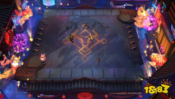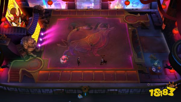 第一个是福牛夜市,可以从房顶欣赏城市大街小巷、立体激光游行和灯会。探索棋盘还会发现更多互动商店招牌、船只等元素。
