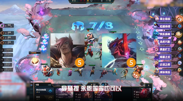 4-3的时候选择拉到8级,并且搜卡找到需要的英雄,诺手三星之后再给装备,要不然就给瑟提、乌鸦、永恩这些5费卡英雄来诺手暂时打工,合适的情况下也可以变阵玩“九五至尊”。福星吃到的妮蔻不要留,今早给诺手提前三星,或者给5费卡提前两星。