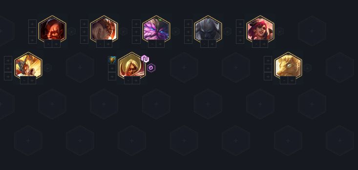 这套阵容的成型有两个条件,要拿到吸血鬼的摄魂使天选之人和金铲铲去合成重装战士转职道具,阵容成型的难度略大,比较适合在娱乐局中去玩。前期可以用重装战士天神来开局,狗头、孙悟空、盖伦和吸血鬼的组合,在拿到吸血鬼的天选之人后,容易去追出三星。中期继续上阵布隆、泰坦等重装战士,从而提升阵容的防御能力,重装战士组成了最坚实的前排,吸血鬼给他们进行回血,可以保证中期的平稳过渡。后期快速升到8人口后,去搜乌鸦和奥恩,这两个5费英雄到手后阵容成型。