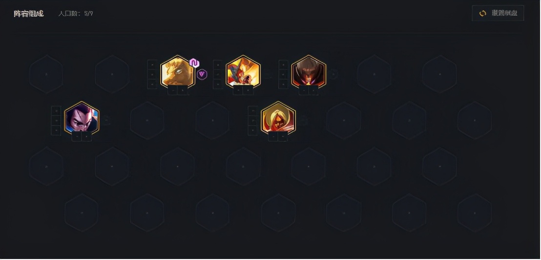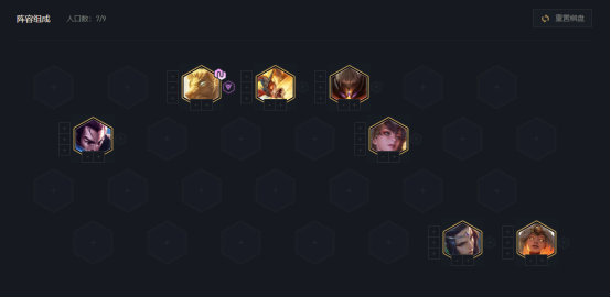 开局必须抢攻速装,第一阶段必须连败,选秀环节再拿攻速。5级过渡阵容推荐【4天神2神使2决斗】,狗头直接上装备,多余装备交给亚索打工,组成下图阵容。