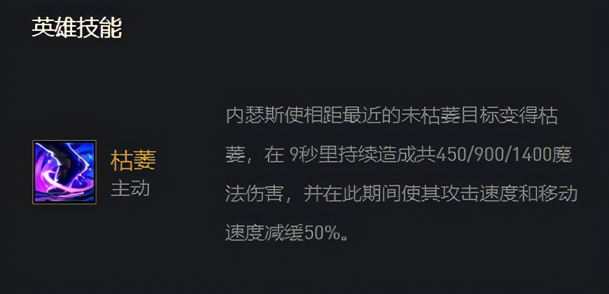 伤害虽然高,但却是在9秒内缓慢掉血的。因此狗头需要极高的生存力,只要足够肉,就可以不断卖血开技能,给全场敌人挂上枯萎,天使就可以轻易收割。而【4摄魂使】拥有100%的回血,狗头挂的枯萎越多,每秒的回血就越快,再加上肉装和天神的减伤,主C狗头不仅坦度高而且回血拉满,在加上蓝量只有70,主C狗头的确可以给全场挂枯萎。