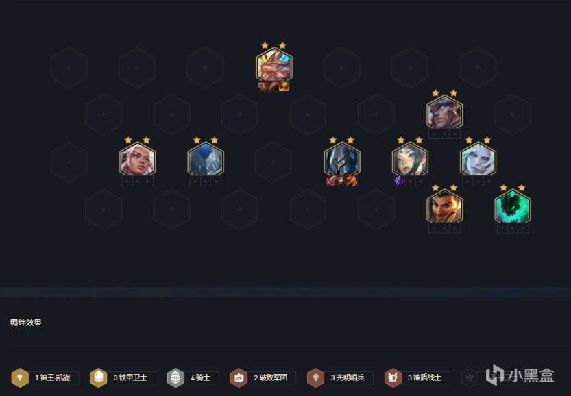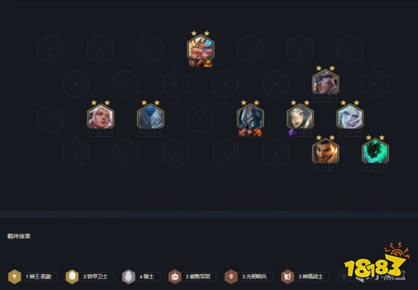 阵容关键羁绊:4骑士+3铁甲+3神盾