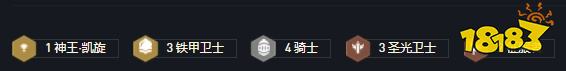 阵容羁绊:1神王·凯旋&3铁甲卫士&4骑士&3圣光卫士&2征服者