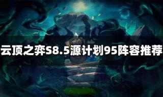 云顶之弈S8.5源计划95阵容羁绊是5源计划4斗士2AI,阵容成员:狼人、铁男、机器人、螃蟹、亚索、锐雯、稻草人、莫甘娜、鳄鱼,主C是狼人,装备优先给泰坦的坚决和水银,第三件给轻语,也可以用饮血剑和分裂弓代替。