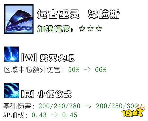 看起来好像是对泽三炮的伤害量的很大增强,其实仔细观察就会发现……只有技能放得准的泽拉斯才配享用这些增强,而那些技能丢不准的、出电刀无尽的泽拉斯还是老样子。