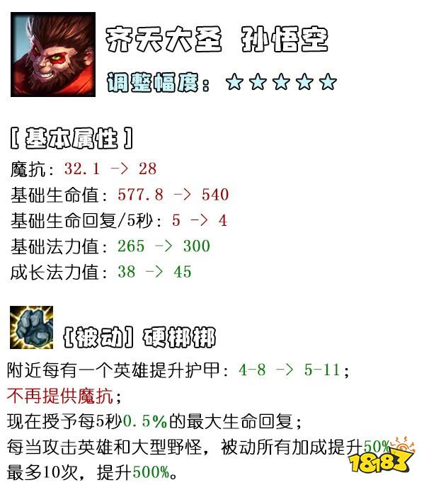 第二条,移除魔抗收益,略微降低了悟空在中路对抗法师时的生存环境,更鼓励悟空往上路或者野区(或者下路)走。