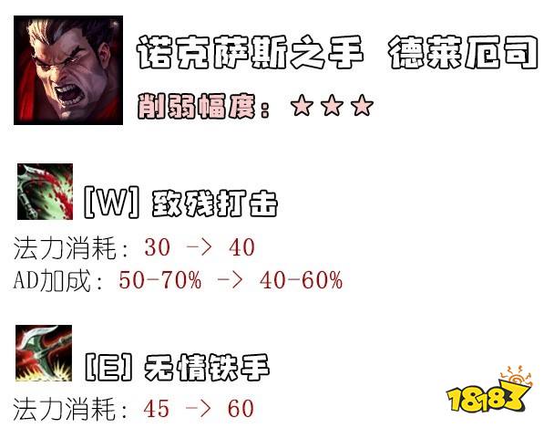 笔者估计这波改动应该是,平衡师有一天打上单被对面诺手吊锤了,然后感叹“WTF?我怎么改出了这么个怪物?”然后终于知道要砍诺手了。