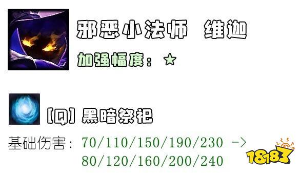 这个改动可以理解为对那些维迦熟练度不高的玩家的一点关爱,因为他们现在可以不用担心Q兵Q出俩残血小兵了。