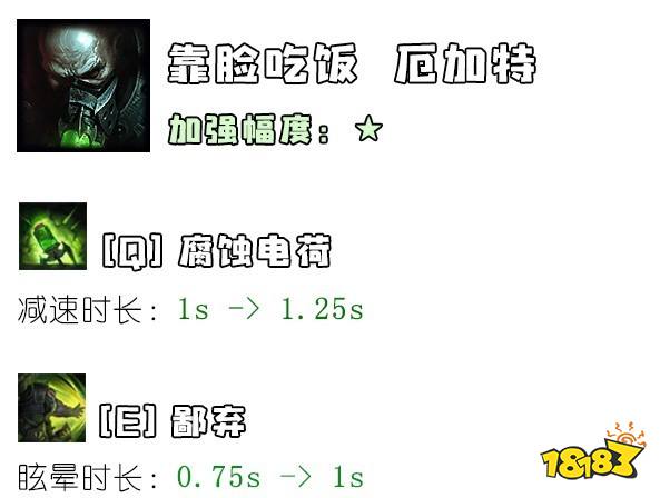 18级法力值面板数值+0.68,终极史诗无敌加强。由于大部分瑞兹都在最后点完W技能,所以10.6版本的改动在整体上是对瑞兹在后期的小加强。
