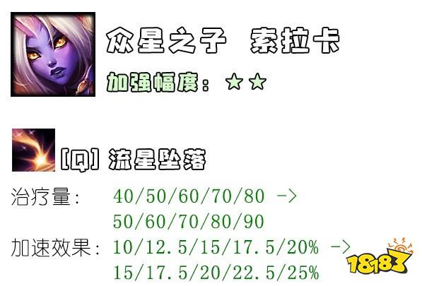 上个版本打一巴掌,这个版本又赏一颗糖,拳头亲女儿(之一)实锤了。不过,即使是加强了Q技能补偿一下前几个版本的重削,10.6版本中的索拉卡依旧不强势。