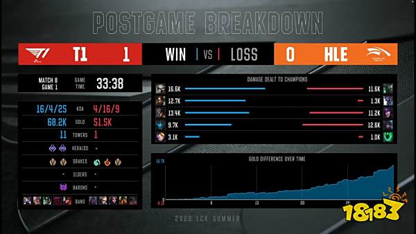 [33:13] T1三路超级兵齐头并进,HLE众人无力处理兵线。在几个干净利落的击杀后,T1成功结束比赛!