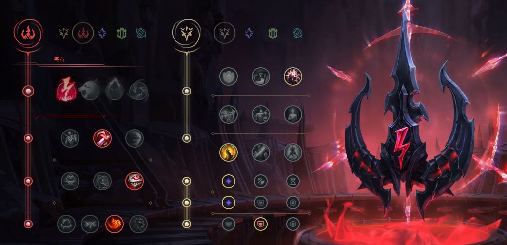 选择常规游线英雄的电刑点法,血之滋味增强线上回复能力,无情猎手搭配E技能游线,有时候无情猎手对于运Q也有着不小的帮助,气定神闲致命一击,常规的法师精密系点法。